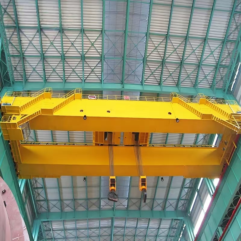 ?是在QD型橋式起重機(jī)的基礎(chǔ)上,將單小車改為雙小車,可單鉤獨(dú)立或雙鉤同時(shí)吊運(yùn)物件,主要由橋架、大車運(yùn)行機(jī)構(gòu)、小車、電器設(shè)備等組成。