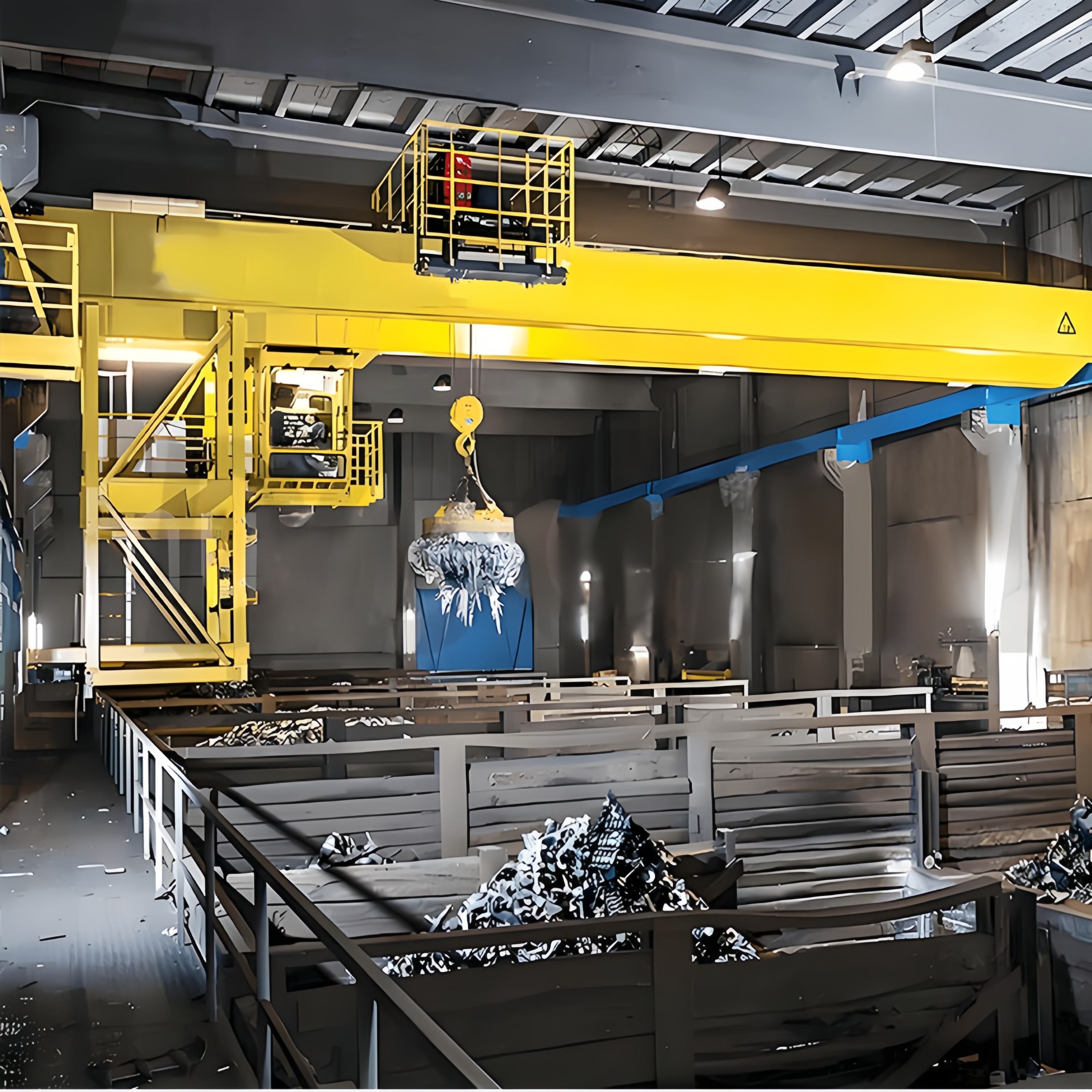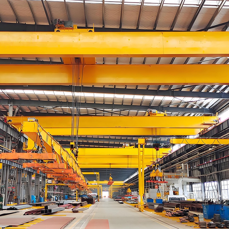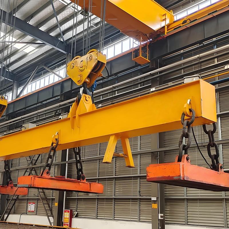 適用干冶金工廠在室內(nèi)或露天的固定跨間較繁重地裝卸及搬運(yùn)具有磁性的黑色金屬制品與材料(如鋼錠、型鋼、生鐵塊)在機(jī)械廠。庫(kù)房中也常有來(lái)搬運(yùn)鋼料、鐵塊、廢鐵、廢鋼、鐵屑等物料。